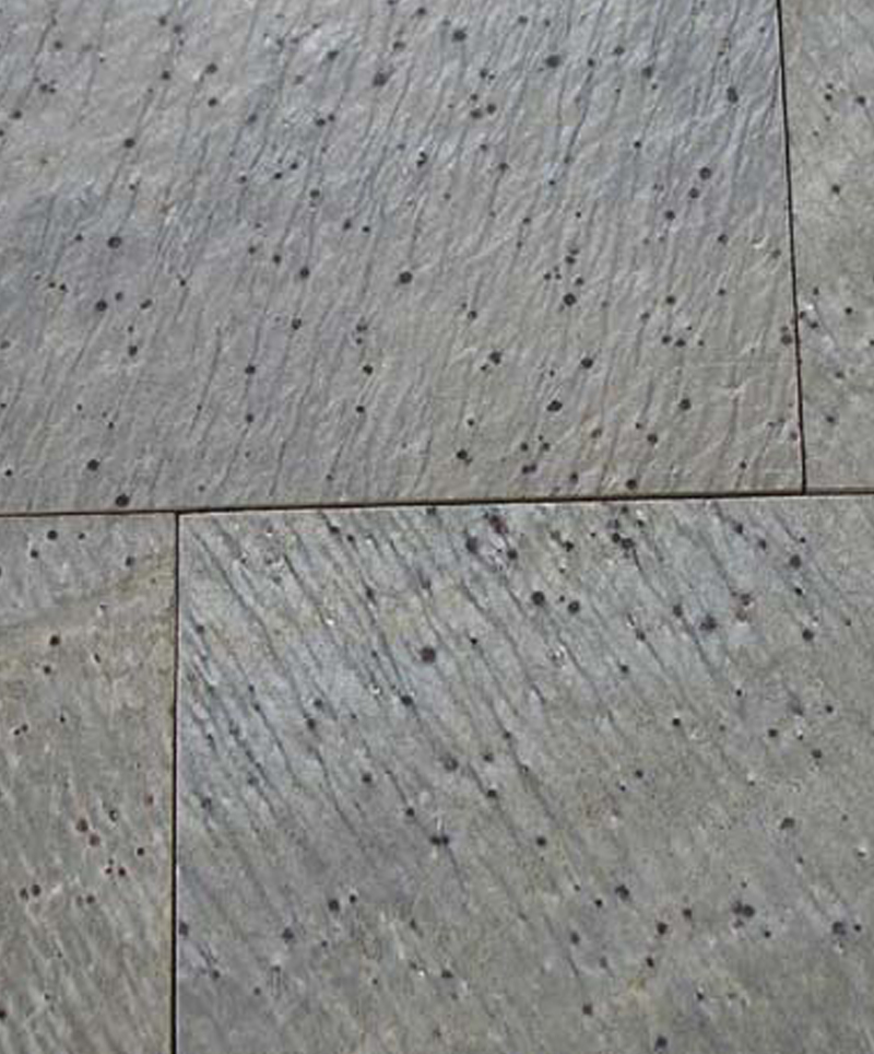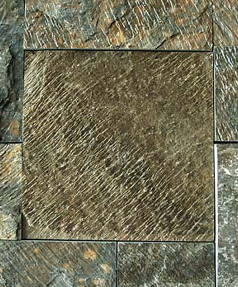 Deoli Green Slate is a family of slate stone that exhibits a 3 Dimensional look upon Honing / polishing. Exclusive to this family even after polishing it will create a visual illusion of the natural texture despite surface being smooth to touch. Due to mica content in the slate stone the natural sheen that it carries is simply unmatched and beautiful. The slate stone carries reddish / black spots which indeed are garnet which gets bisected during the polishing process and thus giving the polished surface exclusivity to any surroundings. The color variation that Honed Deoli Green slate shall be as its natural ones: it shall exhibit gold and silverfish Grays with a tendency to veer to greens or orange