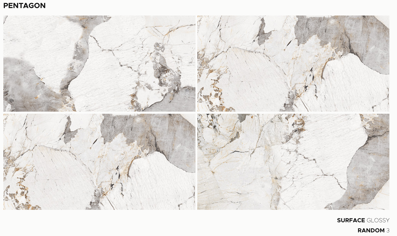 Our PENTAGON High Glossy Porcelain Tile, sized at 800x1600mm, epitomizes elevated elegance. Its grand dimensions make a bold statement in any space, instantly capturing attention and creating visual drama.