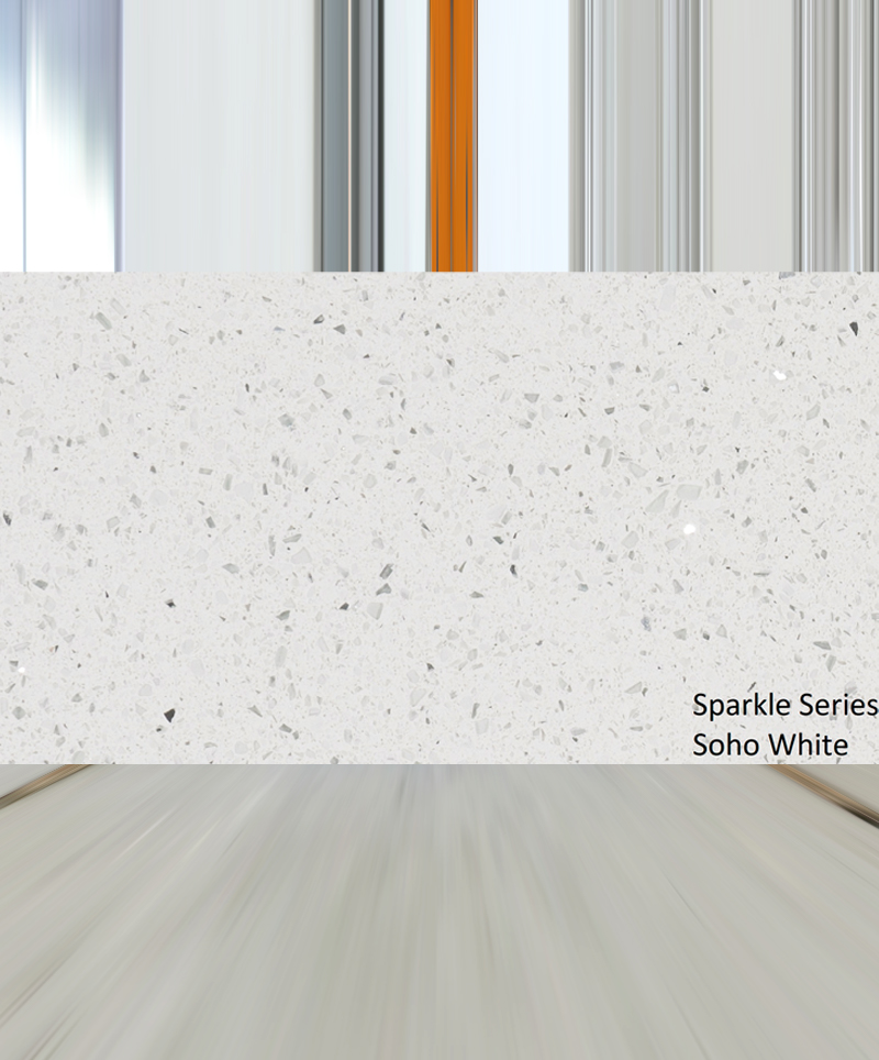 7.Customization Options: The Engineered Sparkle Series Quartz Slabs come in various dimensions and thicknesses, providing design flexibility and ease of installation. The slabs can be joined seamlessly to create larger surfaces with a consistent appearance.
